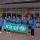 生徒たちがデザインした新しい横断幕「町も心もピッカピッカ」を通学路に掲げました。大柿中学校生徒たちはアダプト活動で学校のまわりもきれいにしています。