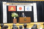 大柿中学校区として大古小学校と昨年度から進めている道徳教育の推進事業の公開研究会を大古小学校で開催しました。研究主題を「自己の生き方を追求する子供たちを育む道徳教育の創造ー道徳教育プログラムの実践を通してー」として取り組みました。本校からは3年生が道徳の「よりよく生きる喜び」の内容で、バドミントンの桃田賢斗選手の「自分を変える力」について公開授業(授業者:戸田教諭、井口教諭)を行いました。