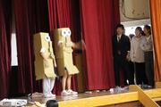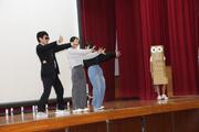 3中学校合同で大柿中学校の体育館に集まり、江田島市教育委員会主催の芸術鑑賞「狂言」を行いました。普段直接見ることのできない「狂言」では、とても有名な和泉元彌さんにお越しいただきました。生徒たちは和泉元彌さんのご指導のもと、体験もさせていただきました。たいへん素晴らしい芸術鑑賞会になりました。ありがとうございました。