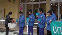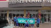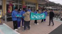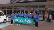 大柿高校の高校生と一緒に、世界の子供たちを救うユニセフ募金活動を藤三大柿店の前で行いました。