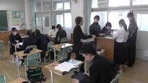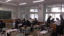 学校での様子をご覧ください。3年生教室で、協働的に学び合う生徒たちや、個別に問題に挑む生徒など、それぞれ自分の進路実現に向けて努力を継続しています。